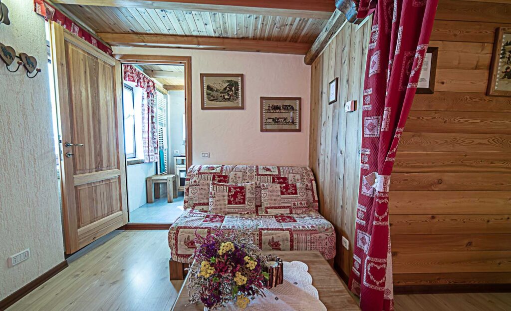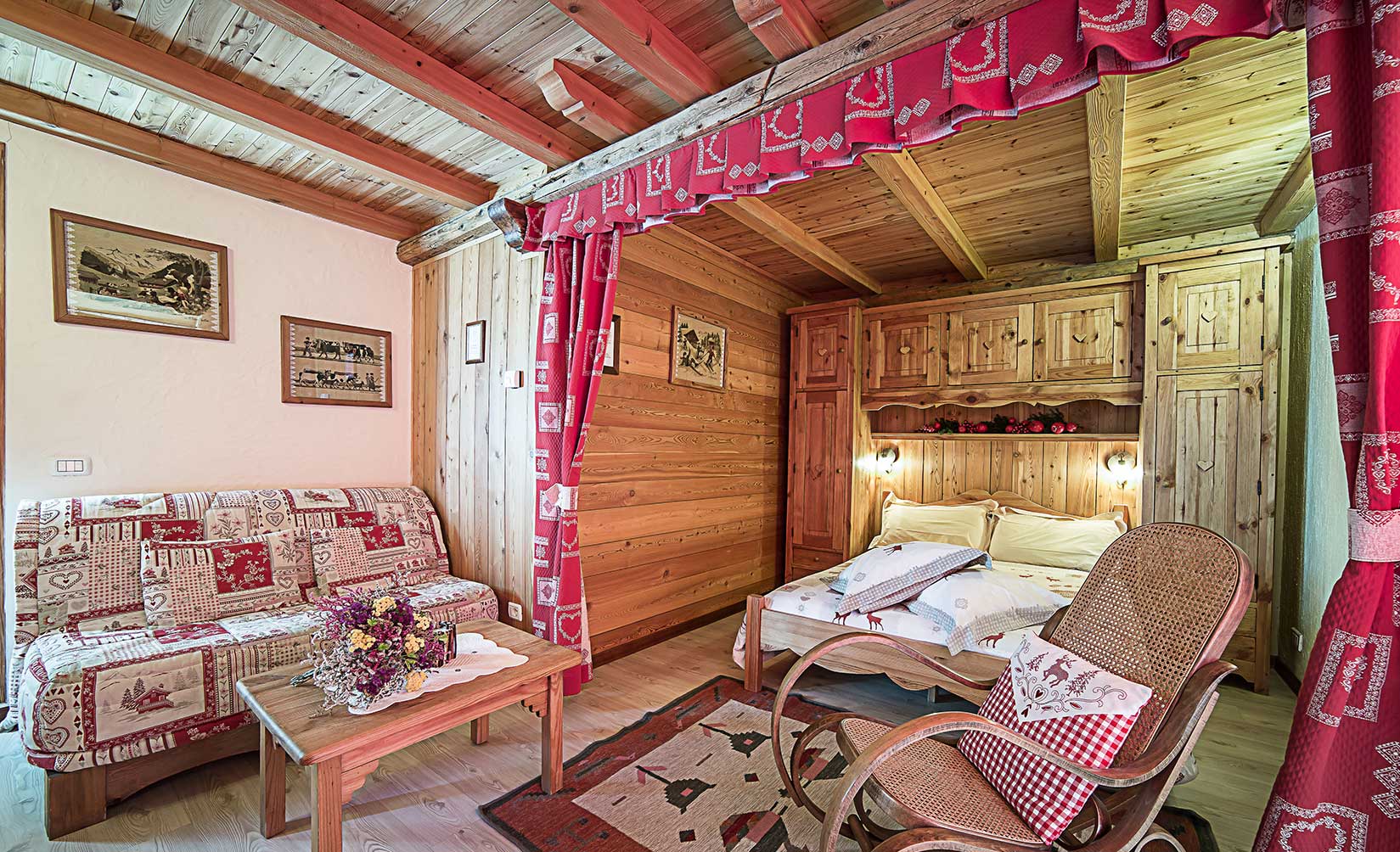 Accogliente e luminosa, la Camera La Chèvre è una matrimoniale arredata in autentico stile alpino, con travi a vista e caldi pavimenti in parquet.